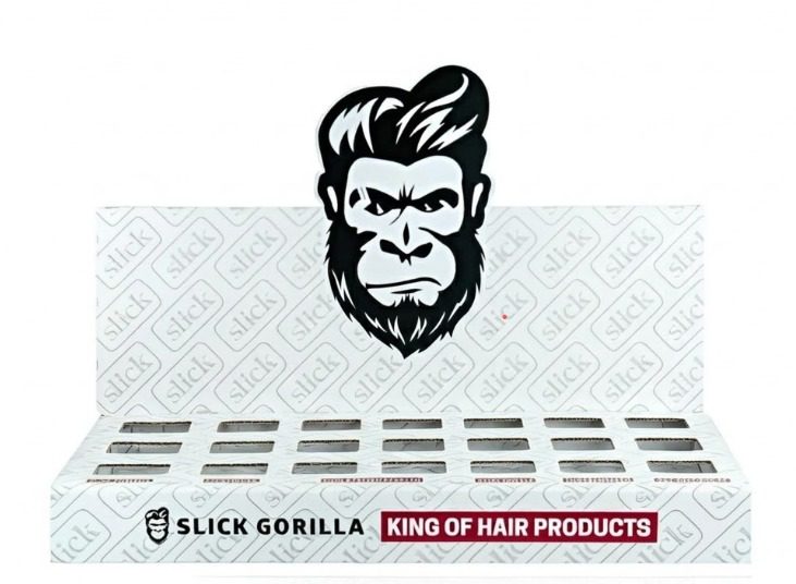 Expositor Slick Gorilla 21 uds es un expositor de sobremesa pensado para dar visibilidad a la marca en barbería y mejorar la presentación de producto en el punto de venta. Su diseño frontal, su imagen de marca muy reconocible y su capacidad para organizar hasta 21 unidades lo convierten en un soporte muy útil para ordenar la zona de reventa y reforzar la presencia de Slick Gorilla de forma clara, limpia y profesional.