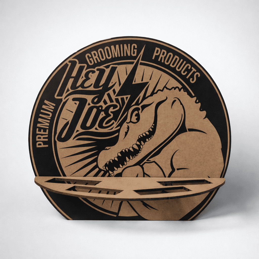El expositor de madera y la capa de corte aportan un extra importante: visibilidad. El expositor mejora la presentación del producto y ayuda a ordenar la zona de venta, mientras que la capa refuerza la imagen de marca en el puesto. Para una barbería que quiere implantar Hey Joe con criterio, este conjunto facilita tanto la exposición como la rotación.