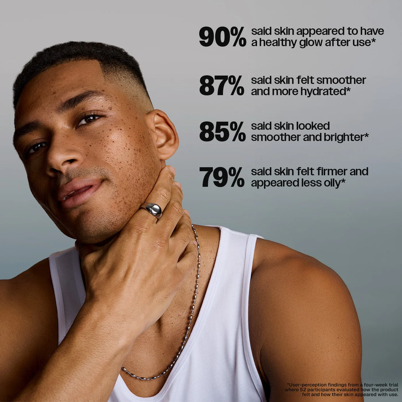 Además, se trata de un sérum de uso diario con textura ligera y absorción rápida. Ese punto es clave en cosmética masculina y en venta retail dentro de barbería, porque muchos clientes rechazan productos densos o rutinas demasiado largas. Aquí la experiencia va justo en la dirección contraria: aplicación simple, sensación limpia y acabado cómodo para seguir con la rutina sin pesadez. Por eso encaja muy bien como sérum facial hidratante y como sérum facial antiedad de uso práctico, especialmente en clientes que quieren mejorar el aspecto general de la piel sin complicarse.